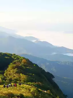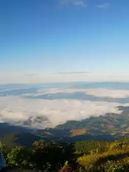 📝: I went there in January. The morning temperatures were very cold. The trail was easy, not too steep, and the grass was yellow, but the trees were still green. The morning mist below was still white, covering the view, and it was very beautiful. When you come to Doi Inthanon, you must stop at the restrooms, food stalls, and clothing stores. The parking lot isn't very large, but it can accommodate several cars. You can also park on the side of the road. There's a local guide to take you on a walk.