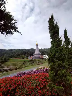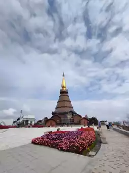 • The Twin Royal Pagodas: Pay respect at the majestic Phra Mahathat Naphamethinidon and Phra Mahathat Naphaphonphumisiri (the twin pagodas), built for King Rama IX and Queen Sirikit. The pagodas are stunning, and the surrounding winter flower gardens are colorful and vibrant (just like in the picture). It’s an essential spot for photos! 🌸🌼