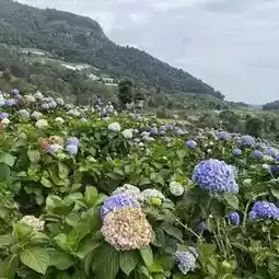 As soon as we stepped into the garden, we were greeted by a breathtaking view of hydrangeas blooming across the entire valley! The flowers are in large clusters with soft blue, pastel purple, and creamy white hues that are so soothing to the eyes. It felt like stepping into a fantasy world filled with flowers.