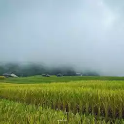 Rice plants are starting to change from green to yellow. Some fields are still green, while others are already yellow and ready for harvest. Anyone wanting to take photos, hurry! I expect harvest will begin in two weeks. The weather is beautiful, and there's always mist floating by.â°ïļð