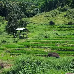 Travel to nature, see green. This trip will go to Mae Sai District, drink coffee, see beautiful mountain views, and walk to see rice terraces.
