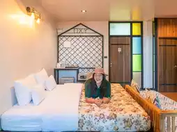 #ChiangRaiAccommodation This barn-style home offers a European feel, surrounded by lush trees. Relax and enjoy the many photo opportunities, with views of the rice fields and tea plantations from the rooms. Whether you're traveling with a group of friends or with your family, there are rooms to suit your needs for 2-4 people. On this trip, I stayed in Room O2, a two-story house with an attic-like feel. There's a sitting area for watching TV, enjoying the view, and opening the windows to let in the fresh air. The accommodation is located near a community area, with a 7-11 nearby. Alternatively, you can order food to eat at the accommodation. Breakfast is served as a set of rice porridge or a simple American set. The price of the accommodation with breakfast is an average of 100 baht per person, making it a great value. It's just a 30-minute drive from Chiang Rai city center and just a 5-10 minute drive to the Choui Fong Tea Plantation.
