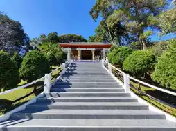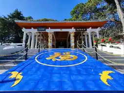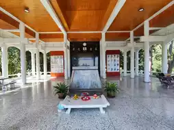 In the large Chinese pavilion, General Tuan Xi Wen's body is enshrined on a marble pedestal. Behind is a picture telling a historical story. In the front is a large gold Chinese character on a blue background, 福, pronounced as Fu, meaning prosperity. It is a point where you can see Santi Kiri Village from above. It is another angle with beautiful scenery.