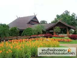 - It is a flower garden that grows winter flowers such as salvia, petunias, begonias, roses, trumpet flowers, various auspicious trees, including more than 70 types of climbing plants and a continuous sculpture made by Mr. Mee Sieim Yib In Soi in the middle of the garden.