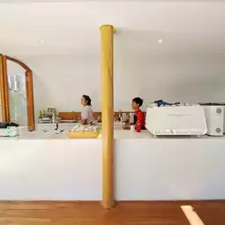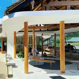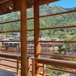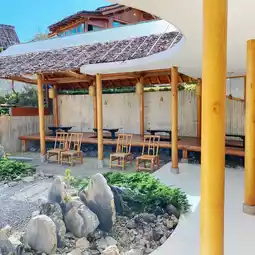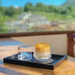 A newly opened cafe with a nice atmosphere, overlooking the mountains and lake from a high angle. The highlight is the beautiful natural view. The shop is located on a hill with a staircase connecting to the parking lot. The interior of the shop is decorated as a Japanese-style garden. The shop is in white and brown tones, looking spacious, clean, and a little Muji, giving a relaxing feeling. The shop is open-air, not hot, with many seating areas and photo spots. This place offers both a cafe and accommodation. The usable areas are clearly divided, providing privacy.