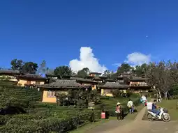 When talking about Mae Hong Son, everyone immediately thinks of "Ban Rak Thai," the famous highlight of Mae Hong Son province that you simply cannot miss. The renowned accommodation here is Li Wine Ban Rak Thai, a place nestled amidst tea plantations and terraced slopes, offering a panoramic view of the entire village. The atmosphere in the morning and evening provides distinctly different experiences, and I highly recommend everyone to come and feel both. In the morning, you can take a boat ride to enjoy the village scenery amidst the mist rising from the Tong Hai Lake. You'll see twinkling lights reflecting across the lake. The main highlight is waiting for the sunrise, as its rays illuminate the village, bringing vibrant colors and life to the area once again. The serene and peaceful ambiance here makes you fall in love with this place over and over again. The 1,864 curves on the way are truly worth it.