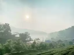 Nature: surrounded by mountains, green green tea, take a deep breath of fresh air
