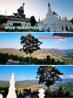 Located on Doi Kong Mu in Mueang District, Mae Hong Son Province, west of Mae Hong Son town, this temple, formerly known as Wat Plai Doi, is a significant and revered landmark in Mae Hong Son. It is considered the provincial temple and chedi. It houses two beautiful chedis: the larger chedi, enshrining the relics of the Venerable Moggallana, brought from Myanmar. The smaller chedi was built by Phraya Singhanatracha, the first governor of Mae Hong Son. From Wat Phra That Doi Kong Mu, visitors can enjoy a clear and beautiful view of the Mae Hong Son landscape and city.