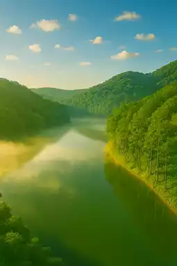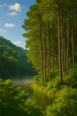 Watch the sunrise, the first rays of the day filtering through the pine trees and the thin mist.