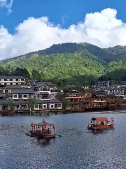 🏞️ The morning air is cool, and mist floats over the lake. Sit in a traditional Chinese-style wooden boat and sip hot tea. ☕🛶 Listen to the gentle sound of the water lapping against the shore. It's incredibly romantic. You'll see mud houses and Yunnan-style teahouses, and red lanterns reflecting on the water make for beautiful photos. 📸✨ After getting off the boat, stop for some steamed buns, pork leg, or grilled pork to cool off.