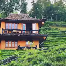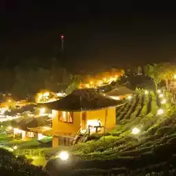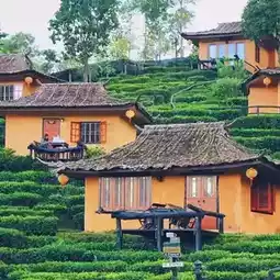 Sleep amidst tea plantations and mist 🌿 at Lee Wine Rak Thai, Mae Hong Son. The romantic atmosphere is nestled amidst lush green tea fields, making it feel like you've been transported to a cozy little village.