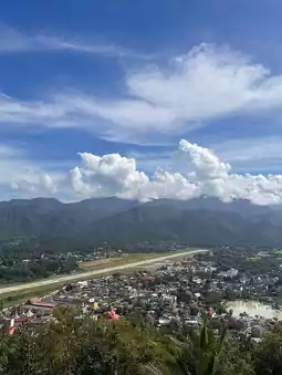 🏔️From the top of the chedi, you'll enjoy sweeping views of Mae Hong Son city, the airport, and the mountains.