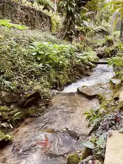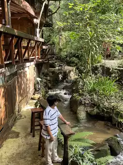 There is a small cafe serving fragrant coffee and delicious snacks with tables by the stream, allowing you to enjoy the natural view.