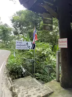 Atmosphere/Location - The shop is near Mae Kampong Walking Street. Walk along and you will see a sign telling you to walk down. There will be a steel staircase leading to the shop. There is also a waterfall flowing through the shop, creating a cool atmosphere and air. Plus, you can sit and drink coffee and cake. It is considered a vacation. There are actually cats to play with, but we went in the morning and they were still sleeping.
