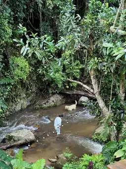 The stream is crystal clear and cool, and you can even play in it! 💦
