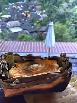 This Mae Kampong accommodation is located at the highest point of Mae Kampong Village, a popular check-in point. It's like you haven't even been here if you don't take a photo here. The highlight is the wooden balcony, which offers a breathtaking bird's-eye view of the village nestled amidst the mountains. It's also a homestay and a cafe, with a great atmosphere and breathtaking views.