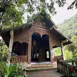 Mae Kampong Waterfall is a short walk away, with a lush atmosphere.