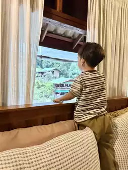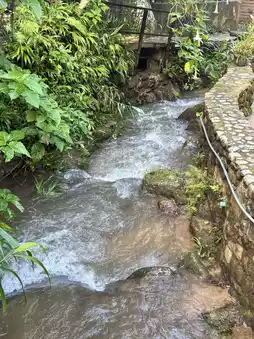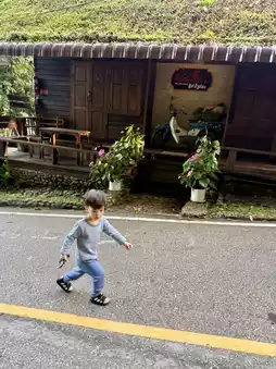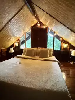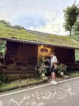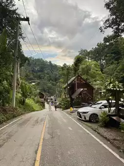 If you're in Mae Kampong and don't know where to stay, I highly recommend Him Doi Home. The rooms are incredibly well-priced. We got this room for less than two hundred baht, and it's even two stories high. The upper floor is a lovely attic. At the back of the room, you'll find a balcony with a view of the waterfall and mountains. It's incredibly healing. I highly recommend this great place to stay! 😍