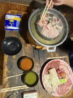 Not including grilled pork, 499 baht per set, can eat for 2 people (must call the chef to inform him what time we will grill) There will be someone to serve at the table in the room