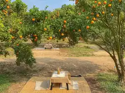 The garden area has many beautiful photo spots. The atmosphere is like being in an orange garden in Korea. There are props and costumes to borrow for free photography. Inside the garden, there is a cafe selling tea and coffee. Bring your card to get a 20% discount on drinks. I recommend the orange juice coffee. It's very delicious.
