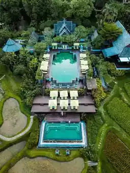 Master architect Pongthep Sagulu drew inspiration from 13th-century Lanna aristocratic estates. Dynasty totems are immortalized in gold leaf reliefs on the pillars, and 300,000 hand-fired clay tiles reconstruct the sloping roofs. The resort also commissioned the Chiang Mai Artisan Association to create 128 bronze lotus chandeliers, which resemble suspended fireflies at dusk.
