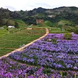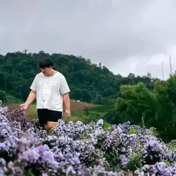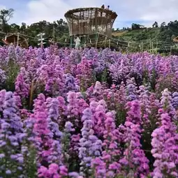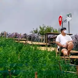 When you walk in, you will see a field of purple marguerite flowers. There are also props such as umbrellas and flower baskets π to please selfie lovers. Every angle you take a photo is awesome, whether it's the Tee Doo Tower π‘ that has a rooftop for taking beautiful photos. Or take photos around the flower garden. Selfie lovers will not be disappointed. Because it's awesome in every corner