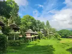 The scenery alone is worth the room rate. The hotel is built on a slope beside a patch of rice fields at the foot of the mountain, with staggered Thai-style buildings, each room having a pavilion. Sitting on the swing chair and gazing into the distance in a daze is pure enjoyment.