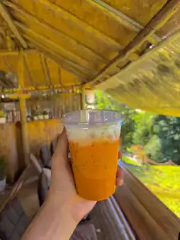 Here, there are both snacks and drinks. The price is cute. We ordered Thai tea. It tasted good. The tea was fragrant. It is another cafe in Chiang Mai that we think is very beautiful. If anyone has a plan to visit Mon Cham, we recommend coming here. The feeling is great.