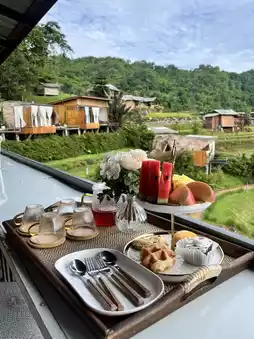 Enjoying breakfast with a million-dollar view like this is a must! The accommodation is not only cozy and surrounded by nature, but also offers a tea set, snacks, and breakfast. Each room comes with one tea set, and breakfast is provided according to the number of guests. We went as a group of four, and they prepared breakfast for all four of us. It’s absolutely heartwarming! Let me tell you, the food is incredibly tasty. You’ve got to try it at least once—it’s simply fabulous!