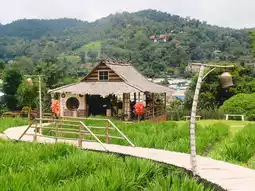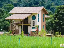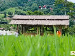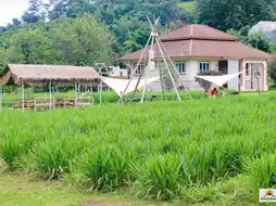 is a Japanese-style cafe and accommodation located in Pong Yang, on the edge of a mountain. The cafe is decorated as a small Japanese hut in the middle of a rice field and valley. The atmosphere is shady, cool, and chill like hanging out at a friend's house. It is suitable for relaxing and taking beautiful photos. There are many menus of drinks and desserts.