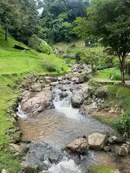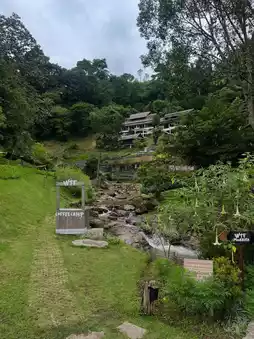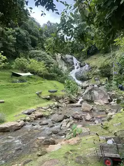 WTF Coffee Camp is located on Mae Rim Road in Mae Rim District, Chiang Mai Province, 40 kilometers from Chiang Mai Airport. It's a camping-style cafe nestled in a natural setting, complete with waterfalls and streams. The name, which may surprise you, is actually an abbreviation for "Waterfall."