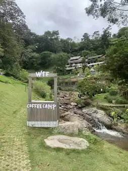 #Get a discount without relying on luck. Mae Rim Cafe is a big shop. There are many accommodations. It's spacious, you can walk around and sit anywhere. The cafe drinks are delicious. The air is nice and cool because there's a waterfall. 😄 Sit and relax, read a book. Actually, the atmosphere is nice for sleeping. 😅 They have accommodations too. As for the price, you can ask on the page. Good view, mountains, waterfalls. The night is quiet. If you don't like the hustle and bustle and want to come relax, this place is suitable. #Get a discount without relying on luck #wtfcoffeecamp