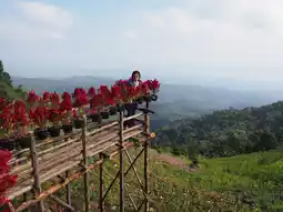 A cafe on a hill with a spectacular view of the flower garden at Mon Cham 🌼🌸