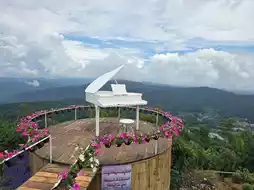 Atmosphere: This flower garden is located on a mountain. The flowers are planted in tiers, gradually rising upwards. It's not a flat garden, but it's surrounded by mountains, offering almost a 360-degree view. The mountain in front is still a mountain with trees, offering a lush greenery. The hills behind are lined with houses and resorts. There's a skywalk that allows you to walk around the garden. The garden also features a piano surrounded by flowers, with the mountain view in the background. This is a must-see photo spot. There's also a swing area and a rooftop restaurant with a panoramic viewpoint. The flowers in the garden are red, purple, and white. I'm not sure if the garden changes the types and colors each year. There's an entrance fee, and there's a souvenir shop selling locally sourced items. Drinks and snacks are also available.
