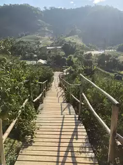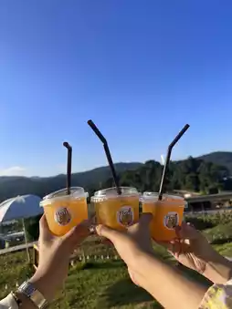 A visit to Mon Cham wouldn't be complete without taking photos with the flowers and oranges. For those with limited time and wanting to capture both beautiful flowers and an orange grove, we highly recommend Pang Hua Flower and Orange Garden. This orange and flower garden is located in Mon Cham, Mae Rim District, Chiang Mai Province. There's an 80 baht entrance fee, which can be used as a discount at the cafe inside. My friend and I had a glass of orange juice each, and we were absolutely thrilled! 😋🧡✨