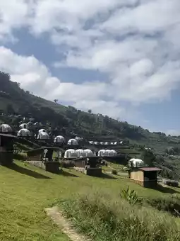 Wake up to a stunning view of layered mountains surrounded by a gentle sea of mist, giving you the feeling of being abroad. 🏞