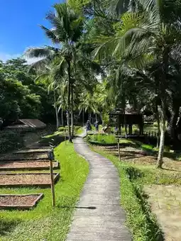 The hotel is surrounded by rice fields. You'll have to check which month you're visiting. Sometimes the fields are green, and sometimes they're golden yellow. It's a beautiful sight in its own right.