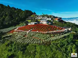 A popular tourist attraction on Doi Mon Cham, the garden is awash with vibrant colors of flowers. 🌼🌷 Everywhere you look, you'll feel refreshed, vibrant, and filled with the fragrance of nature. 🌿 The highlight is the stunning photo opportunities amidst the colorful flower fields, with a backdrop of mountains and morning mist.