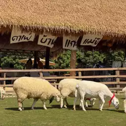 "Baan Kae Mae Khi" in Mae Rim District, Chiang Mai Province, is the happiest sheep farm atop Mon Cham Mountain, boasting stunning views. They also have adorable sheep, alpacas, goats, birds, and rabbits. They also serve food, drinks, coffee, non-coffee, and snacks. This is a must-visit spot! Every angle is stunning, and the sheep are incredibly cute! 😍😍