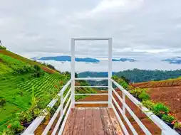 This mountainside accommodation features a cafe and rose garden where you can relax, take in chic photos, and enjoy a cup of coffee while enjoying the mountain views. It's truly amazing at the end of the rainy season. This cafe offers a stunning view, located on Mon Cham in Mae Rim District, Chiang Mai. The weather is pleasant almost year-round, offering panoramic views and a relaxing atmosphere. In addition to coffee, they also offer tea and pastries. Overall, the taste is decent. Enjoy the view and the mountain atmosphere.