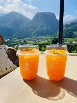 The cafe is located in the middle of an orange garden. In addition to eating and having dessert here, you can also walk around the orange garden along the way. 🍊