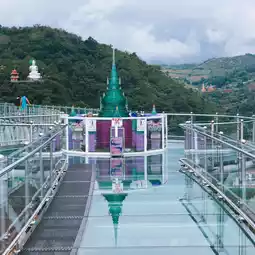 It is the northernmost skywalk in Thailand. On Wat Phra That Doi Wao, the structure is curved. The walkway is about 150 meters long. In addition to being the northernmost in Siam, it is also considered the longest skywalk in Thailand. You can see the beautiful scenery of both Thailand and Myanmar.