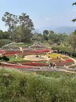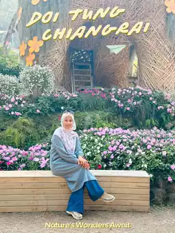 #Get a discount without relying on luck Doi Tung, Mae Fah Luang District, Chiang Rai Province, has 2 places to visit: Phra Dam Nak Doi Tung and Mae Fah Luang Garden. If you have time, you can visit both places, but I chose the flower garden. In the Mae Fah Luang Garden (Doi Tung Garden), there are many colorful flowers of various species, beautifully arranged. Beautiful ornamental plants and flowers, walking around, taking pictures, no matter where, every angle is beautiful. Especially in the winter, the atmosphere is even more enjoyable. Tired from taking photos? Stop by “Doi Tung Cafe” where you can sit and relax, enjoy the view, and sip coffee in the garden.