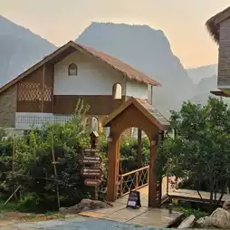 This accommodation has a few rooms, beautifully decorated, suitable for relaxation 🏡😊 With a backdrop of Doi Pha Mi and a cafe decorated cutely with bamboo work. The shop has a variety of drink and cake menus 🍰☕