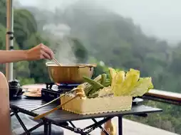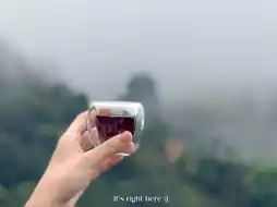 Relaxing in the mountains, enjoying coffee, enjoying the mist