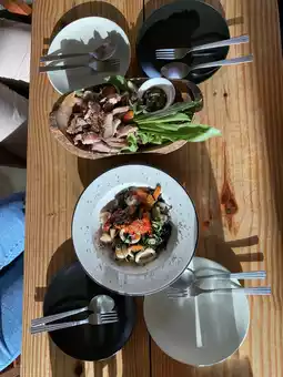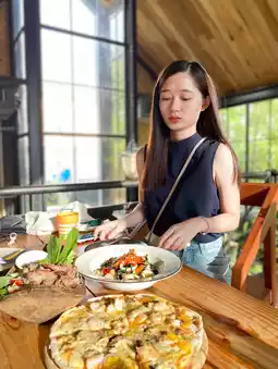 Mo Cafe Mae Sai is a cafe that cafe hoppers will love! The shop's modern loft design blends raw, cool metal and glass with warm woodwork, creating a casual yet stylish feel. Every corner is photo-worthy, with both an indoor area with clear glass windows offering a view of lush greenery, and an outdoor area surrounded by nature.