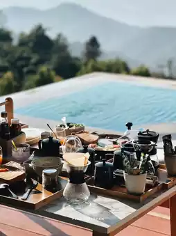 Private Luxury Villa in a minimalist style on Doi Chang (Doi Lan Village), Chiang Rai Province. The accommodation is a villa with only 3 unique houses, surrounded by nature, panoramic mountain views, nothing to block the view.