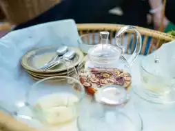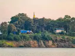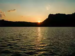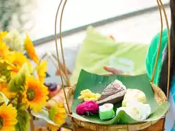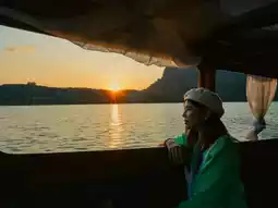 We booked a private boat service from 'Kod Camping' for 1,800 THB per boat. The wooden boat takes you on a tour of Mae Suai Dam, with the Mae Suai Cave visible in the background. There are two daily boat trips to choose from, and we picked the evening slot to enjoy the sunset. Tea and snacks are provided on board, and the boat is beautifully decorated for photo opportunities at the bow.