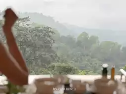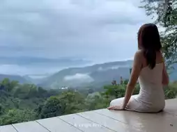 📸 Overall atmosphere: A wooden house in the middle of the mist, a view of the mountains overlapping as far as the eye can see, with the fragrant smell of coffee in the morning