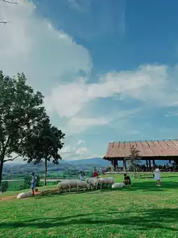 The atmosphere here is warm and feels like being abroad. There are adorable sheep to take photos with 🐏 and plenty of photo spots, including grass fields, a café, and panoramic mountain views 🌿.